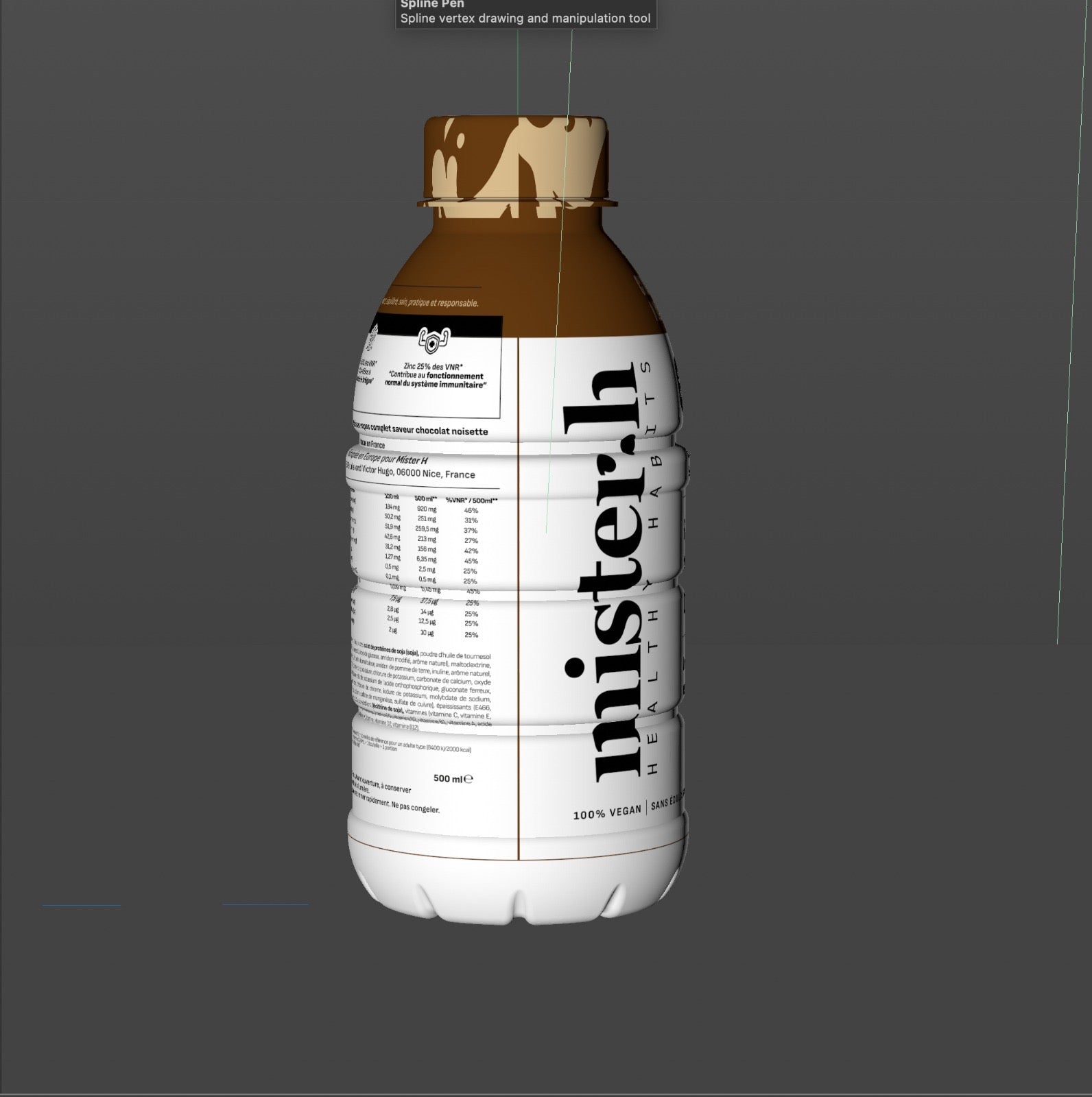 Mister H pour Mister Healthy, plutôt cliché pour notre premier nom de marque. La boisson ne sortira jamais car la protéine principale était le soja (allergène), et il y avait des arômes dit "naturels" mais qui, comme bien souvent, ne l'étaient pas vraiment. On s'est toujours dit qu'on voulait faire une boisson qu'on serait heureux de boire tous les jours pour notre santé et là, ce n'était pas le cas. Cette histoire est vraie - d'ailleurs, notre société s'appelle encore Mister H !